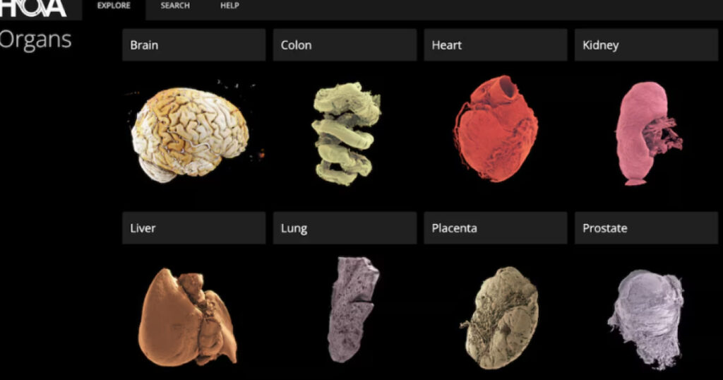 Actualmente incluye datos de decenas de órganos procedentes de múltiples donantes, organizados en cientos de conjuntos de datos tridimensionales que pueden ocupar desde decenas de gigabytes hasta más de un terabyte. En cifras concretas hablamos de 56 órganos, 307 conjuntos de datos 3D completos de 25 donantes. El objetivo del proyecto es que el atlas sea una herramienta abierta para investigadores, médicos, estudiantes y también para el público general. Los usuarios pueden visualizar los órganos, descargar datos o analizarlos con herramientas específicas.