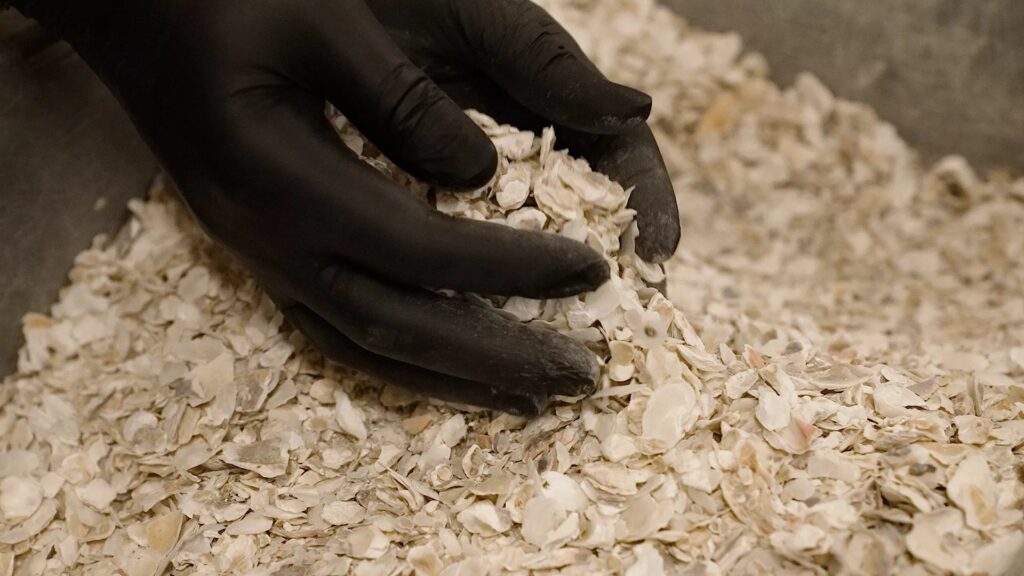 Esta mortalidad genera miles de toneladas de residuos de conchas al año. En lugar de tratarlos como basura, el comité marisquero regional los recoge y los reutiliza. “Buscamos nuevas salidas para aumentar continuamente el valor añadido del producto”, afirma Matthieu Cabaussel, director del Comité Regional de Marisqueo de Arcachón, Aquitania. “También intentamos desarrollar proyectos innovadores con cadenas de suministro cada vez más locales siempre que sea posible, con una reutilización real a nivel local”.
