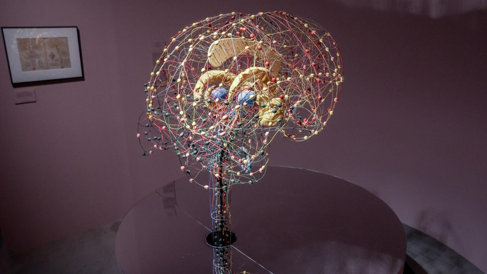 Una pieza que simula un cerebro en la exposición ‘Cerebro(s)’ en el Espacio Fundación Telefónica, en Madrid. / FOTO: Ricardo Rubio / Europa Press