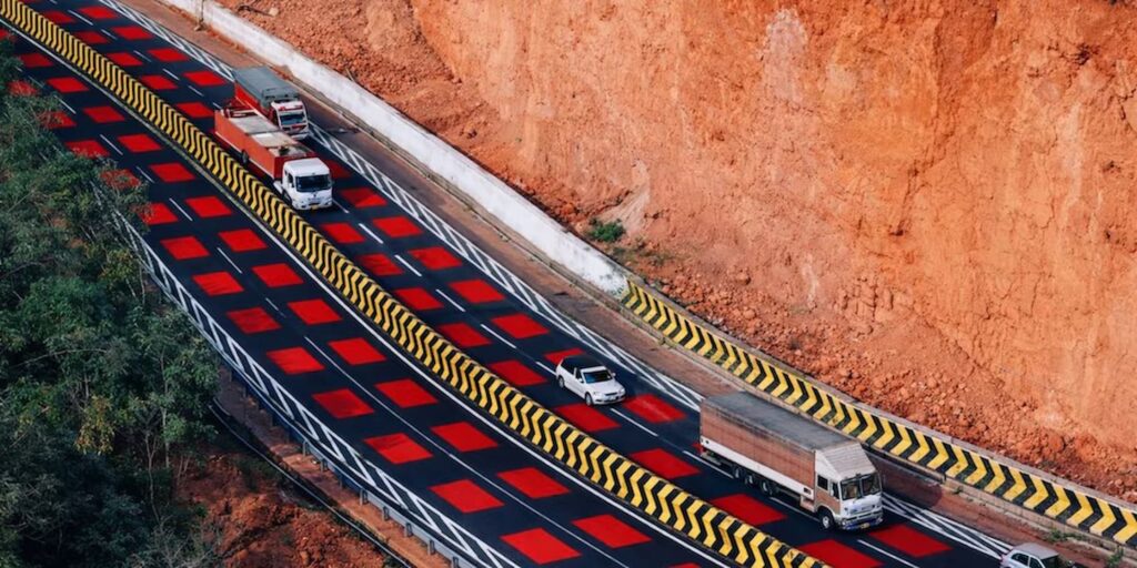 La llamada carretera roja que se ha inaugurado en la India se basa en la aplicación de un pavimento texturizado, conocido como table-top, de color rojo, gracias al pigmento, de este color, que lo recubre. Esta capa, de 5 milímetros de espesor, sirve para advertir a los conductores de que transitan por zonas con elevada presencia de fauna salvaje, por lo que, en cualquier momento, podría cruzar un animal. Deben estar atentos y conducir con precaución para evitar atropellos y muertes.