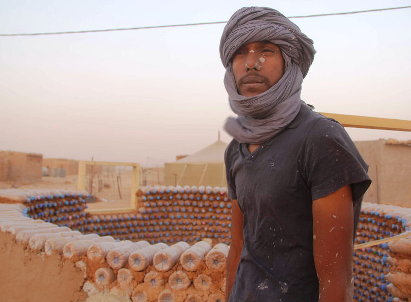 Al joven saharaui de 31 años Tateh Lehbib le llamaron loco desde que en 2017 construyó 25 casas con botellas de plástico y arena en la hamada argelina. La iniciativa, financiada por Acnur, se desarrolló en esta zona desértica muy hostil en la que se ubican los campamentos de refugiados de Tinduf y donde Tateh nació y se crio.