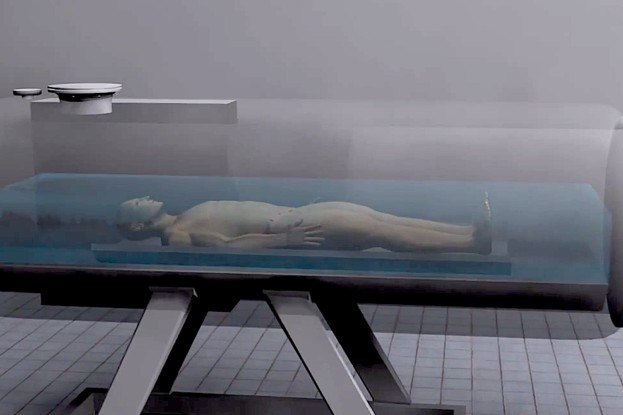 El cuerpo se coloca en un recipiente metálico a presión que se llena con una mezcla de agua e hidróxido de potasio y se calienta a una temperatura de unos 160°C a una presión elevada que impide la ebullición. Los restos humanos se descomponen en sus componentes químicos, desintegrando completamente su ADN.